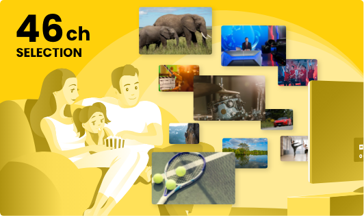 ムービー・アニメ・スポーツ・エンタメ・ドラマ・ライフ。この6ジャンルに分けた、全46chの人気専門チャンネル。有料オプションで特別チャンネルもラインナップ。